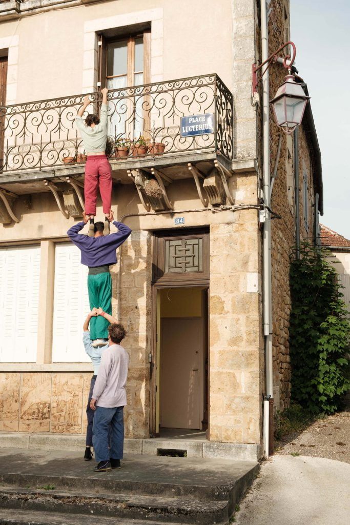Impact d’une course est une création déambulatoire pour l’espace public reliant deux lieux. Façades, toits, fenêtres, échelles, terrasses ou parcs, tout devient surface de jeu pour les cinq acrobates et le musicien-sprinteur. Ici, le public en action est invité à observer et à explorer son environnement le plus proche. Cette balade acrobatique et musicale convoque les techniques de cirque indisciplinées, le parkour, l’escalade psychobloc, la danse contemporaine, et même l’afro-beat !