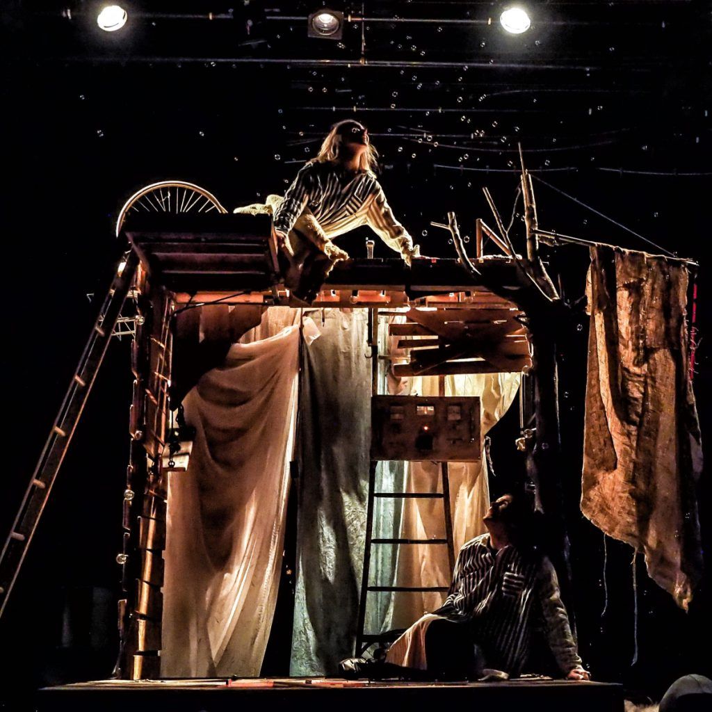 Un comédien et une comédienne, en grimpant aux échelles, en actionnant les poulies, les manivelles d’une cabane fabriquée par des enfants, jouent quinze personnages en questionnement : Comment fait-on pour grandir? Est-ce qu’il faut simplement gagner quelques centimètres ? Ne plus avoir peur du noir? Faire tout comme les adultes ? Momo, Minie et leurs ami.e.s se confient dans une suite de portraits remplis d’humour et de tendresse.