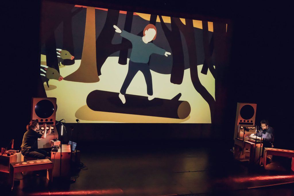 Ces récits intimes, livrés à hauteur d’enfant, viennent rencontrer des images et des sons fabriqués sur scène, jusqu’à construire un véritable film en direct ! Tout en poésie, le spectacle nous invite à nous ouvrir aux autres, à la différence, et à faire un pas vers l’inconnu.